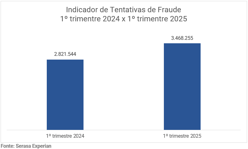 O Brasil contabilizou 3.468.255 tentativas de fraude nos três primeiros meses de 2025, um aumento de 22,9% em comparação ao mesmo período de 2024.