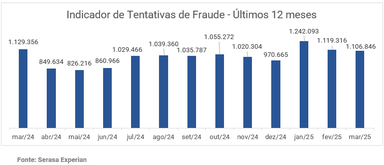 Somente em março, o Brasil registrou 1.106.846 tentativas de fraude — uma a cada 2,4 segundos, ou 25 por minuto.